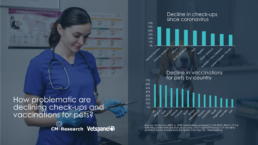Check-ups, which can be the root of identifying the need for vaccination, also rapidly declined as a result of lockdowns in Western Europe, with 50 per cent of vet practices across this region reporting the highest drop in these routine assessments of how pets are doing, the highest when compared globally.