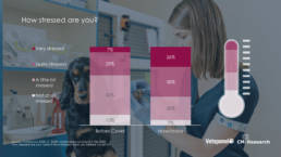 If we look again at the global level we also note that there are some key subgroup differences when it comes to reported stress levels. Veterinary nurses and technicians have significantly higher stress levels compared to other groups. Furthermore, the stress levels of female veterinary professionals are relatively high; the majority of female professionals are either ‘very stressed’ (28%) or ‘quite stressed’ (40%), which is significantly higher than the percentage of ‘very stressed’ or ‘quite stressed’ male professionals (54%). Finally, we also see that those working in corporate practices are reporting higher levels of stress..