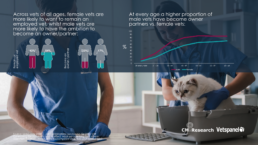 With much higher proportions of women entering the profession we’d expect to see some levelling out of the balance of owner/partner positions held by men. However, even among the very youngest groups of veterinarians we are still seeing a higher level of owner partners among men than women.